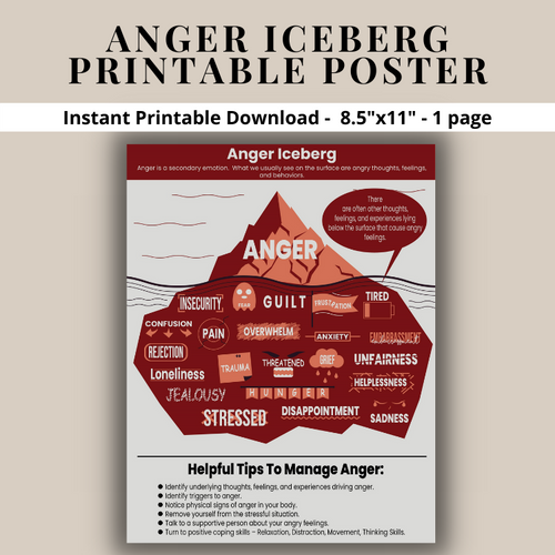 Anger Iceberg Printable Poster Handout With Anger Management Tips For Coping Kids Teens School Counseling Social Emotional Learning
